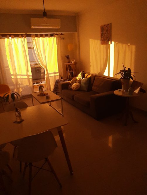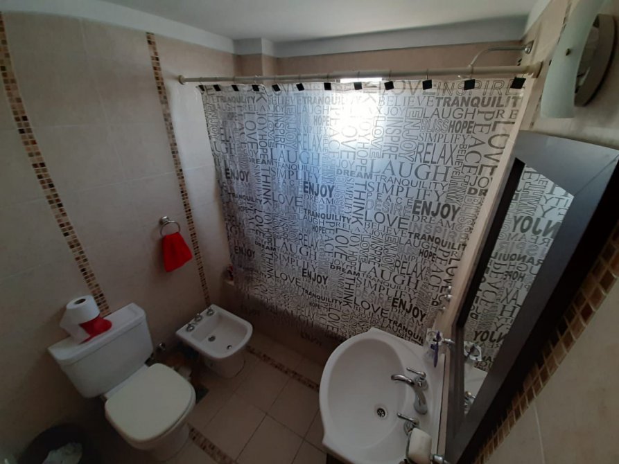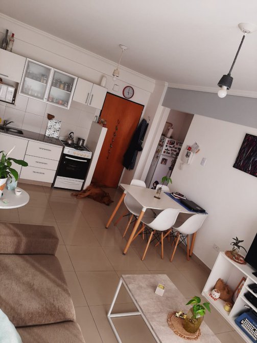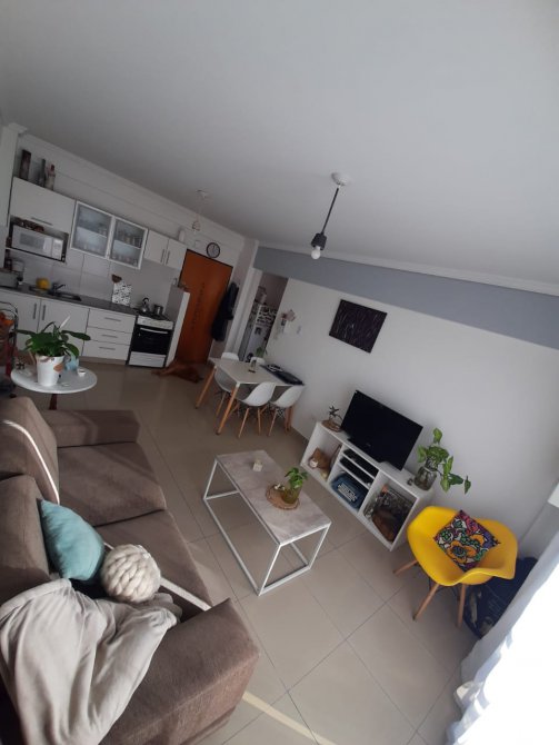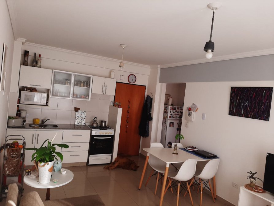 Ingreso por living comedor de amplias medidas con pisos de porcellanato y salida al balcón.