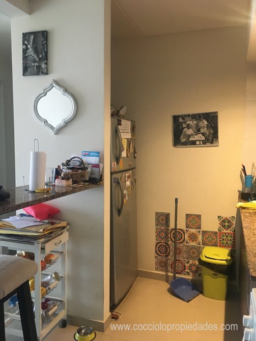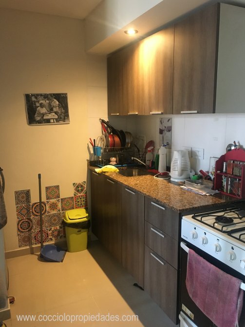 Cocina equipada a continuación con barra desayunadora hacia el living.