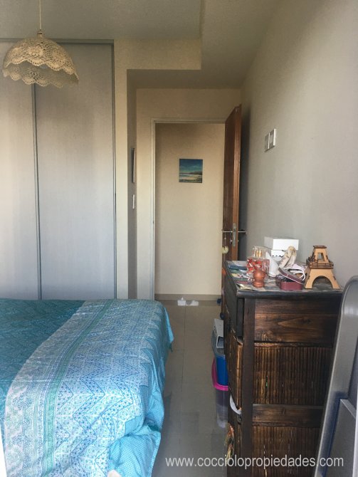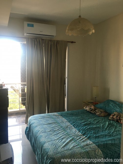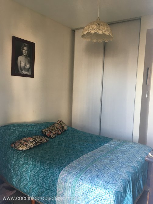 Dormitorio con pisos de porcelanato y placard, con salida al balcón.