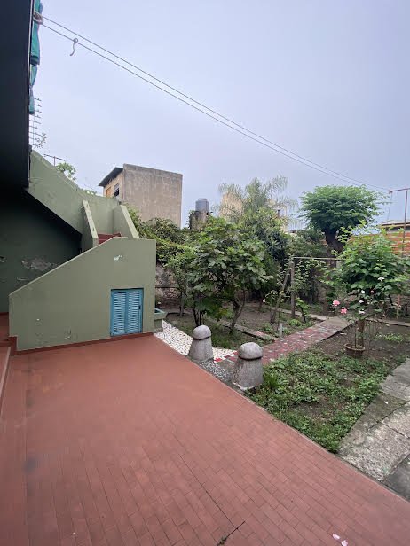 Patio muy amplio con jardín y toilette de servicio. Parrilla