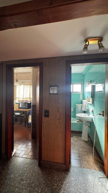 Ingreso por living comedor con pisos de mosaico y salida al balcón.