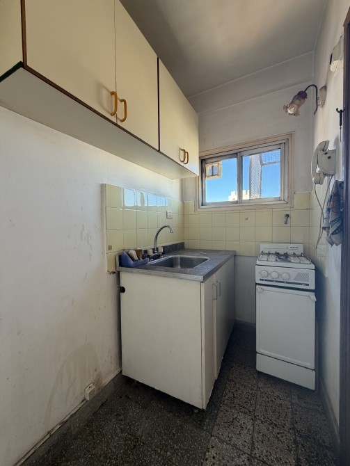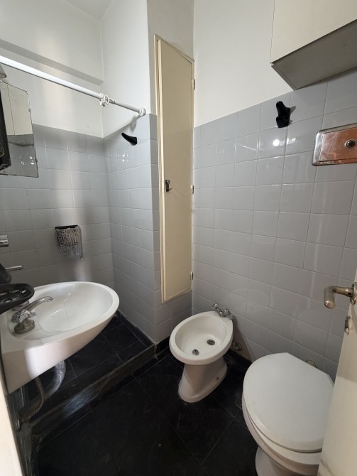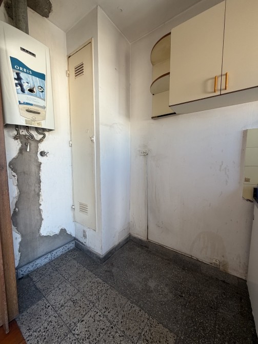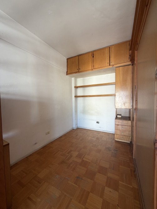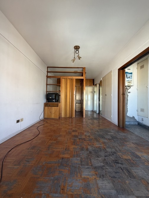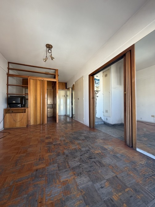 Estar y comedor con pisos de parquet y salida al balcón. División en madera para dormitorio.