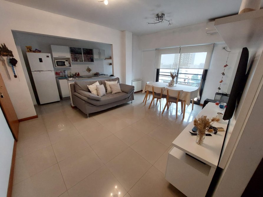 Ingreso por living comedor con pisos de porcelanato y salida al balcón.