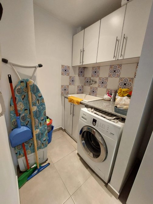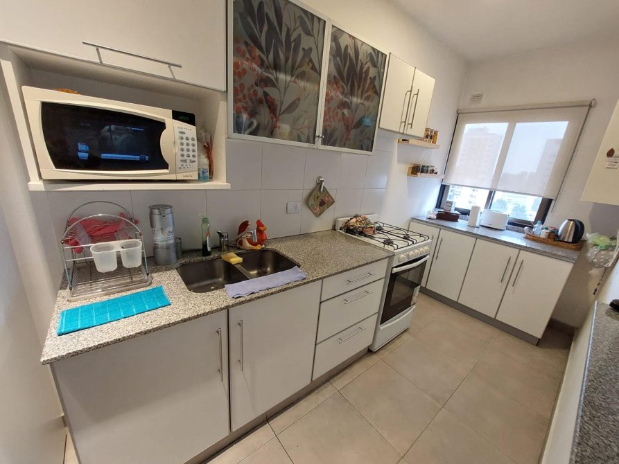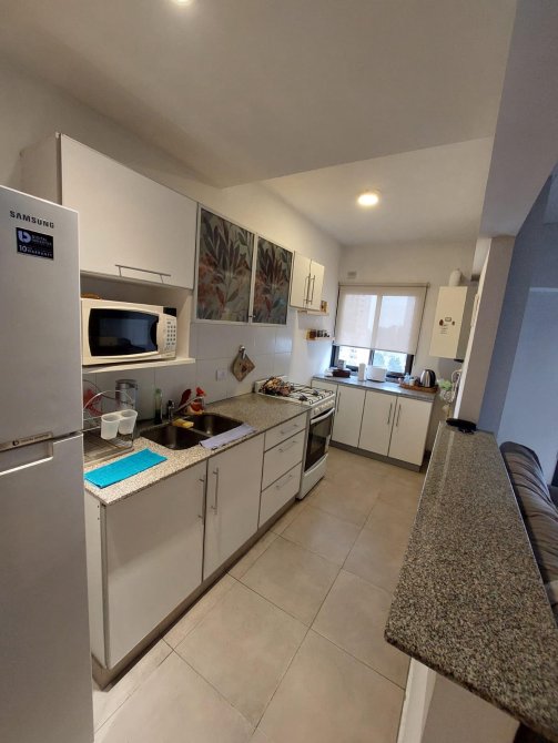 Cocina completa con muebles bajo mesada y alacena. Barra desayunadora, caldera eléctrica dual.