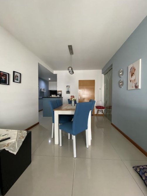 Ingreso por living comedor con pisos de porcelanato y salida al balcón.