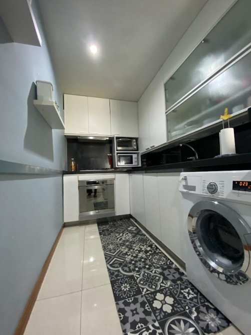 Cocina completa a continuación con muebles bajo mesada y alacena. Espacio para lavarropas.