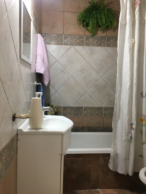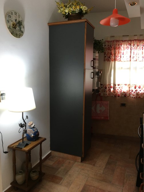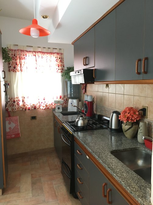 Cocina completa con muebles bajo mesada y alacena; espacio para lavarropas.