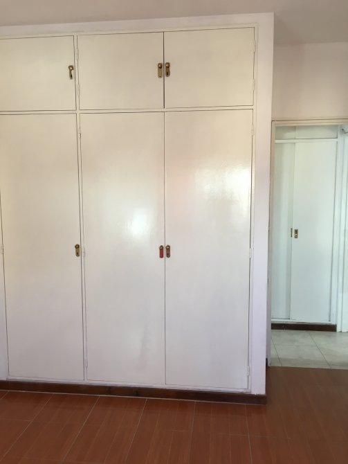 Dormitorio con pisos de cerámicos símil parquet y placard.