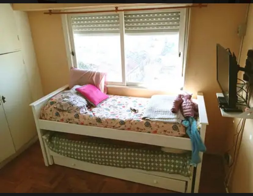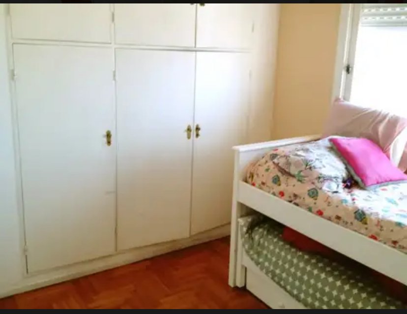 Dormitorio de 3,50 x 3,20 con piso de madera y placard empotrado.