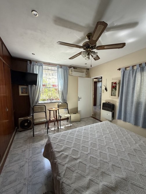 Dormitorio de amplias medidas con pisos de cerámicos y gran placard con muy buen espacio de almacenamiento, con ventilación al patio.